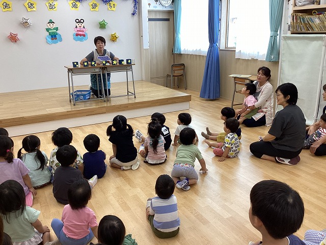 少し早めの七夕会をしました。紙芝居、ペープサート、歌楽しみました☆